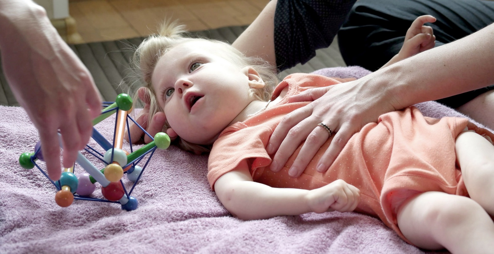 My intention is to help your child learn to live with increasing independence and well being, no matter what their current abilities are. I use my knowledge of developmental movement and perception to help your child learn the developmental pieces they need right now. The new abilities they learn become increasingly complex, and develop exponentially, helping children and babies to learn and develop far beyond perceived limitations. I create conditions to turn your child’s ‘learning switch’ on, and often work with play, games and a child’s closest relationships to create meaningful intentions and motivations for learning new abilities. Many parents of children with special needs are told what their child can’t do, or won’t do. Instead, my eye is trained to see your child’s potential. I see all their movements and responses, whether voluntary or involuntary, tiny or big, as abilities from which learning can develop.